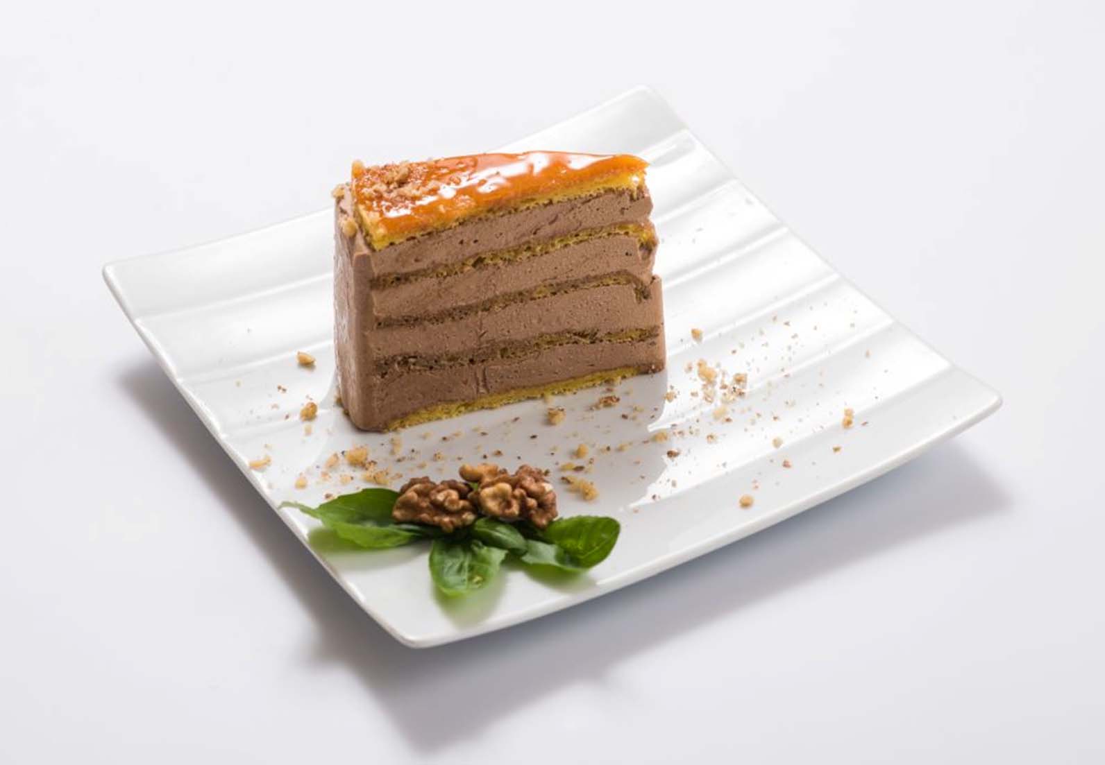 A Hungarian classic: 5 layers of sponge cake and chocolate buttercream, topped with shiny caramel.